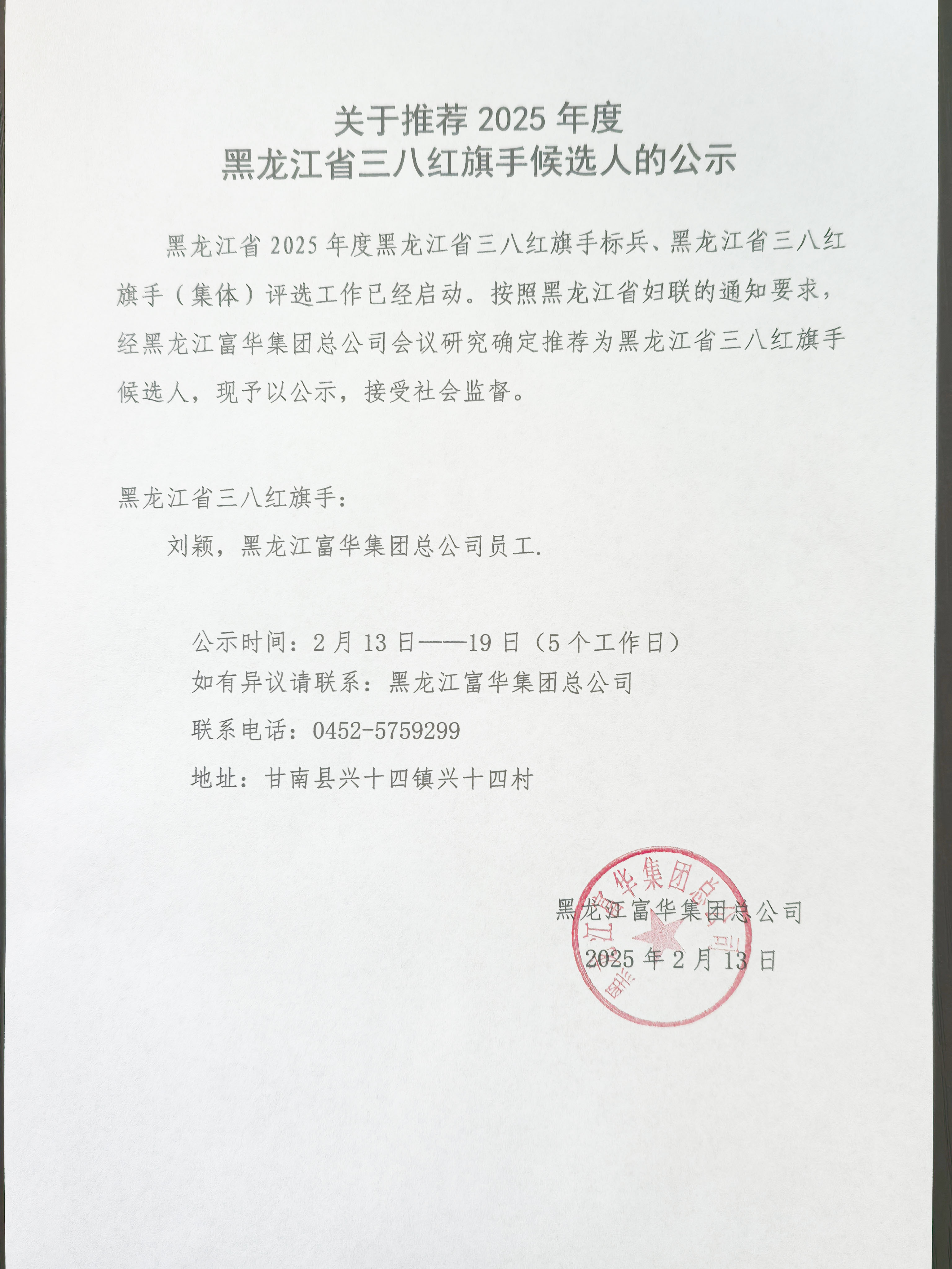 關于推薦2025年度黑龍江省三八紅旗手候選人的公示
